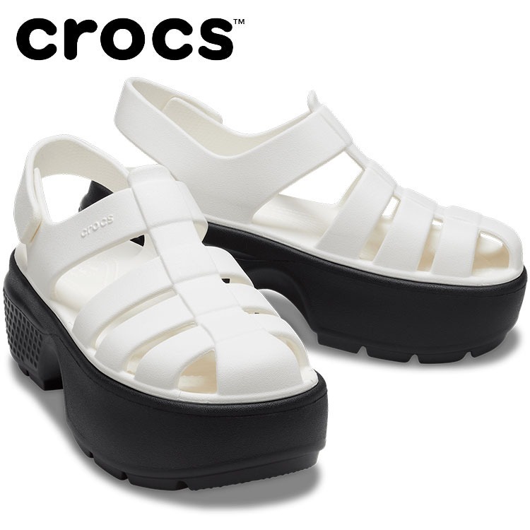 > 25cm クロックス ストンプ フィッシャーマン サンダル チョーク ホワイト系 ブラック M7W9 Stomp chalk 新品