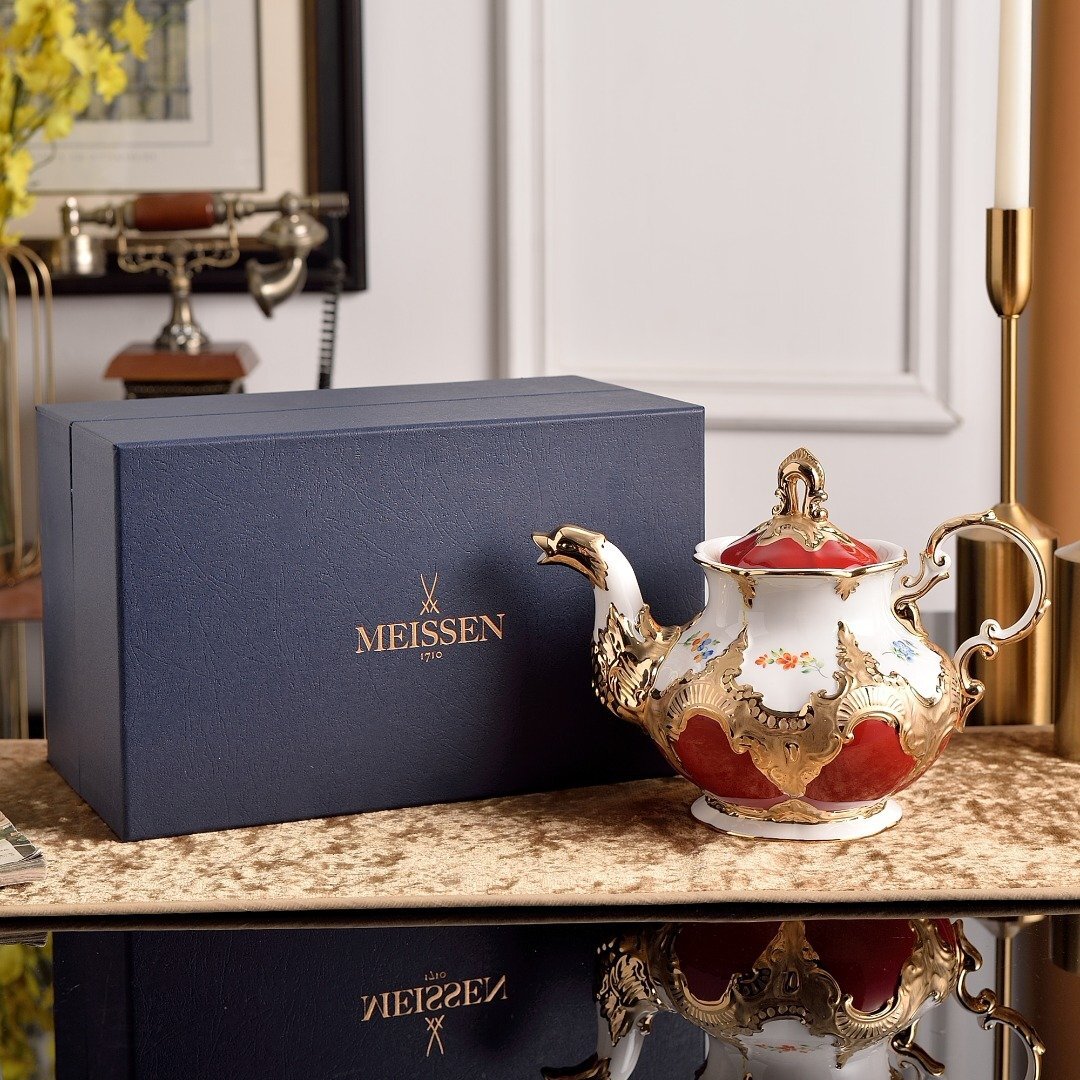 - MEISSEN B-FORM マイセン テイーポット 洋食器 アフタヌーンティー レッド 箱付き 刻印付き ms0376