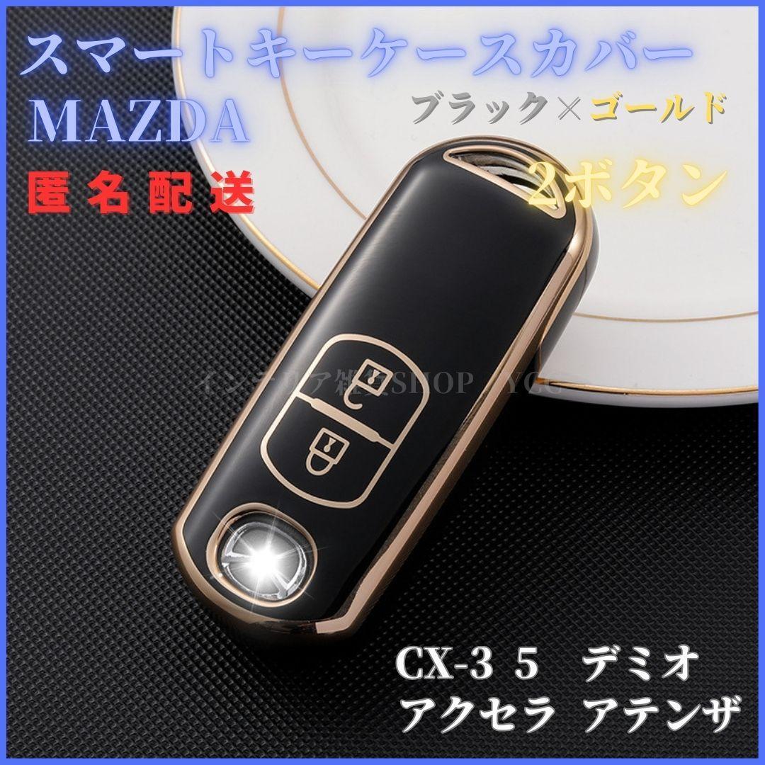 - MAZDAマツダ キーケースキーカバー CX-5/3 デミオ アクセラ アテンザ ロードスター スマートキー 2ボタン 黒金