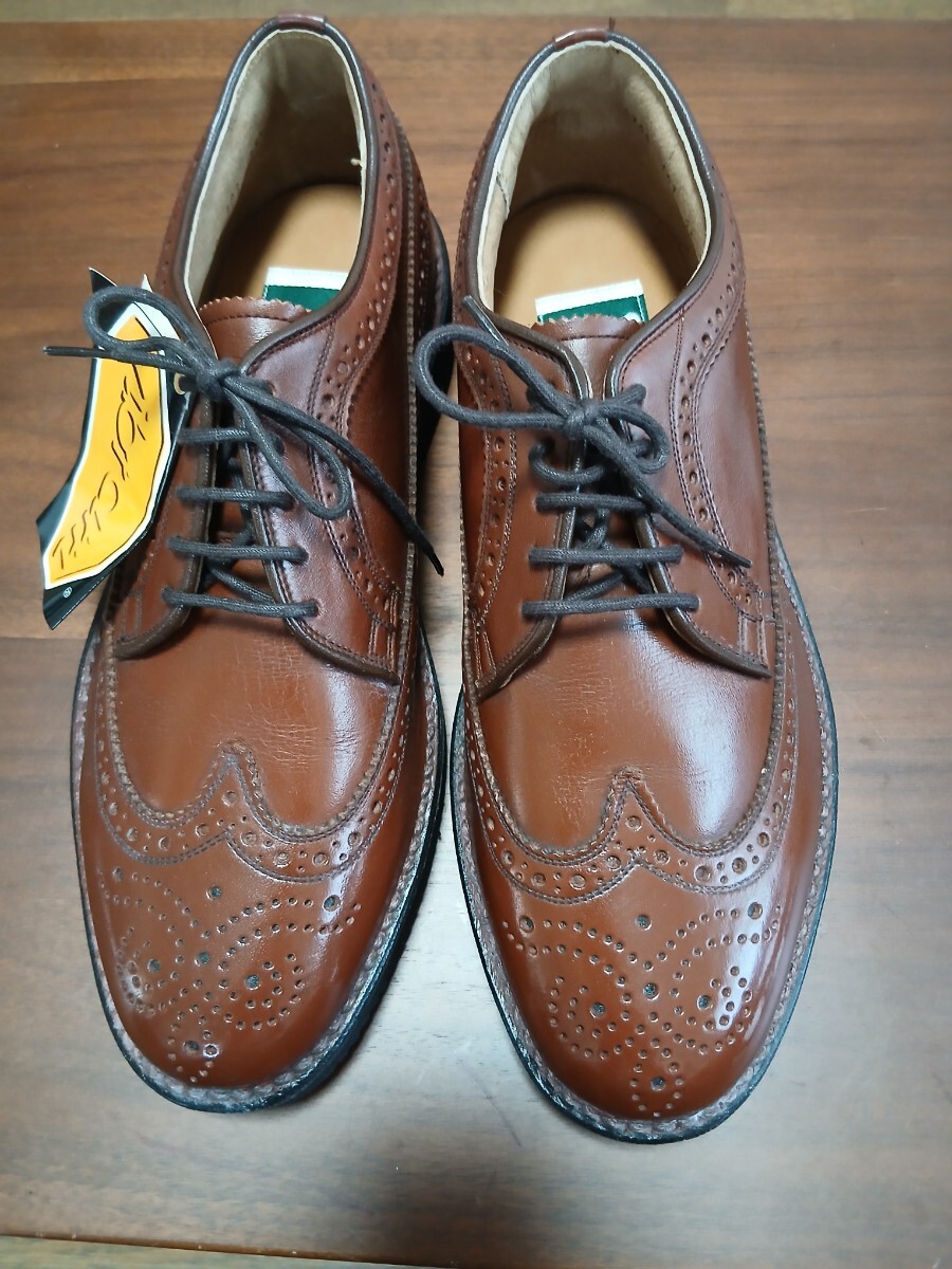 - 新品ビブラムソールのウイングチップ、本革、茶、サイズ25.5cm
