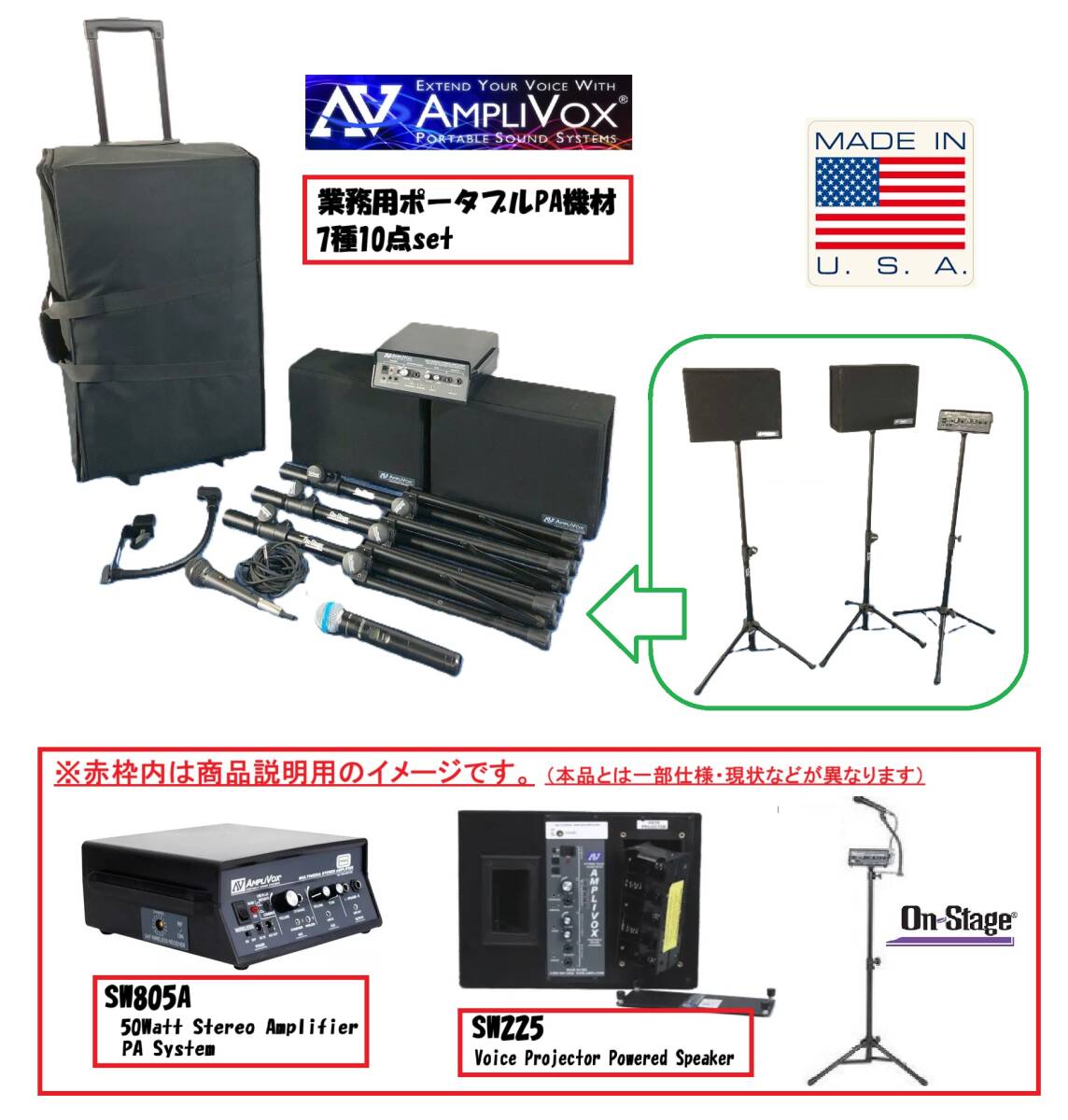 > 【アメリカ製】AMPLIVOX 業務用ポータブルPA機材 7種10点set ワイヤレスレシーバー内蔵アンプ SW805A スピーカー 米軍放出(160)BH13OK-N#25