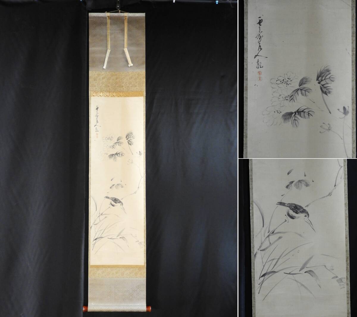 - 真作 雲室 (翠蘆菊之図・竹陰) 箱書き有 掛軸 真筆保証 肉筆保証 骨董 絵画 書 古物