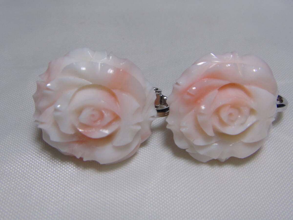 - 本珊瑚 本サンゴ さんご イヤリング 彫刻 お花 大きめサイズ レトロ アンティーク ヴィンテージ C440