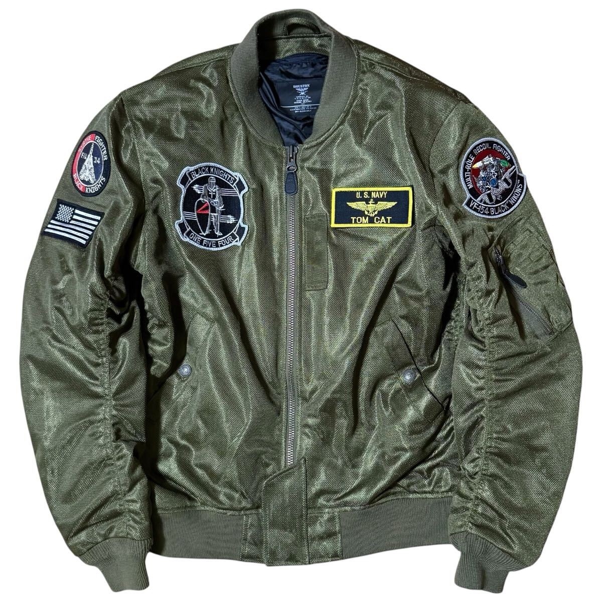 - HOUSTON MA-1 BLACK NIGHTS メッシュM/Cジャケット Lサイズ フライトジャケット