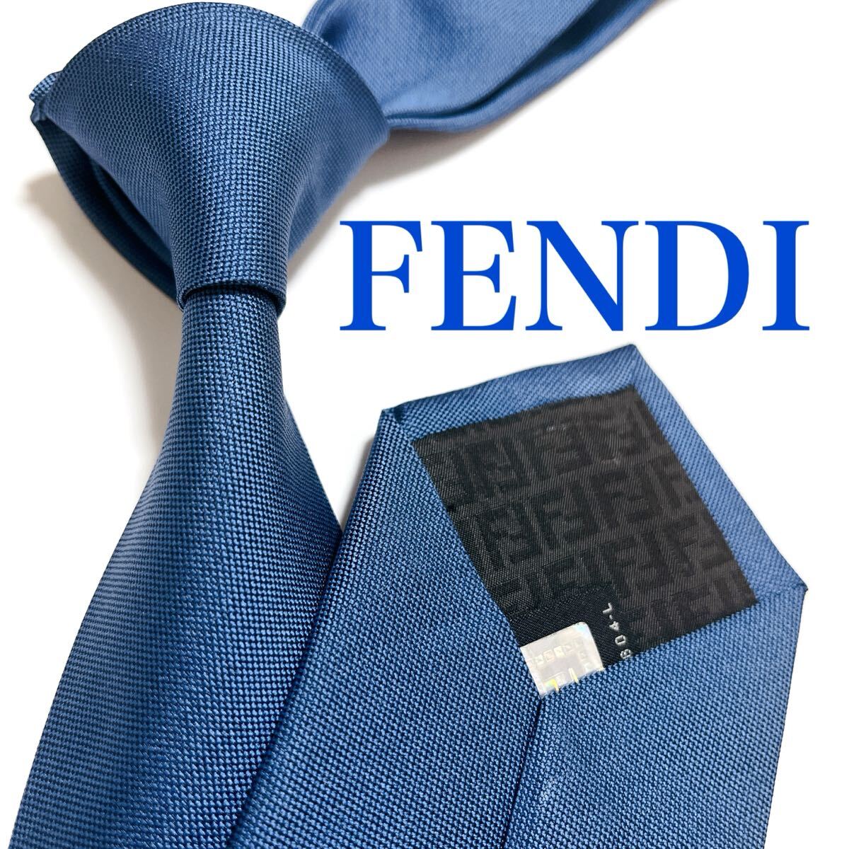 - 美品 フェンディ ネクタイ ハイブランド ソリッドタイ 無地 光沢 希少 ブルー