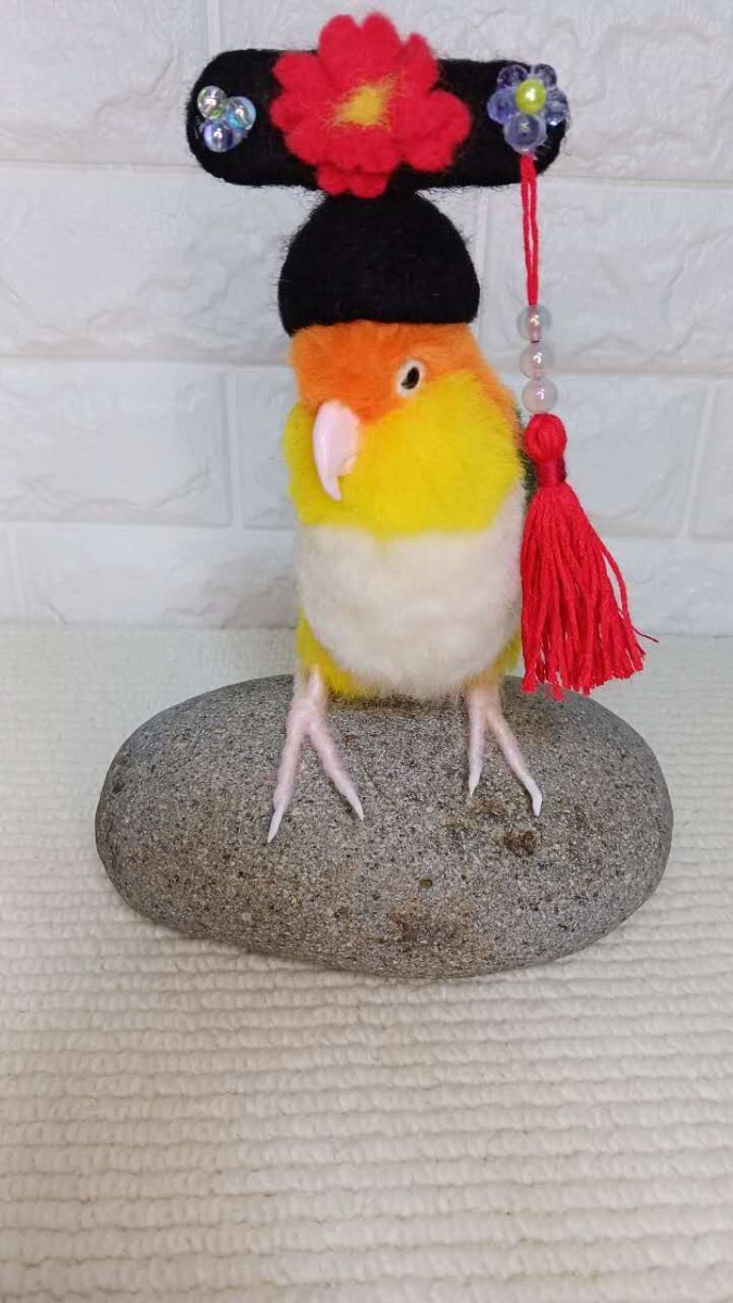 - ++nannan++ 羊毛フェルト シロハラ インコ 鳥 手乗りサイズ ハンドメイド アート作品 インテリア