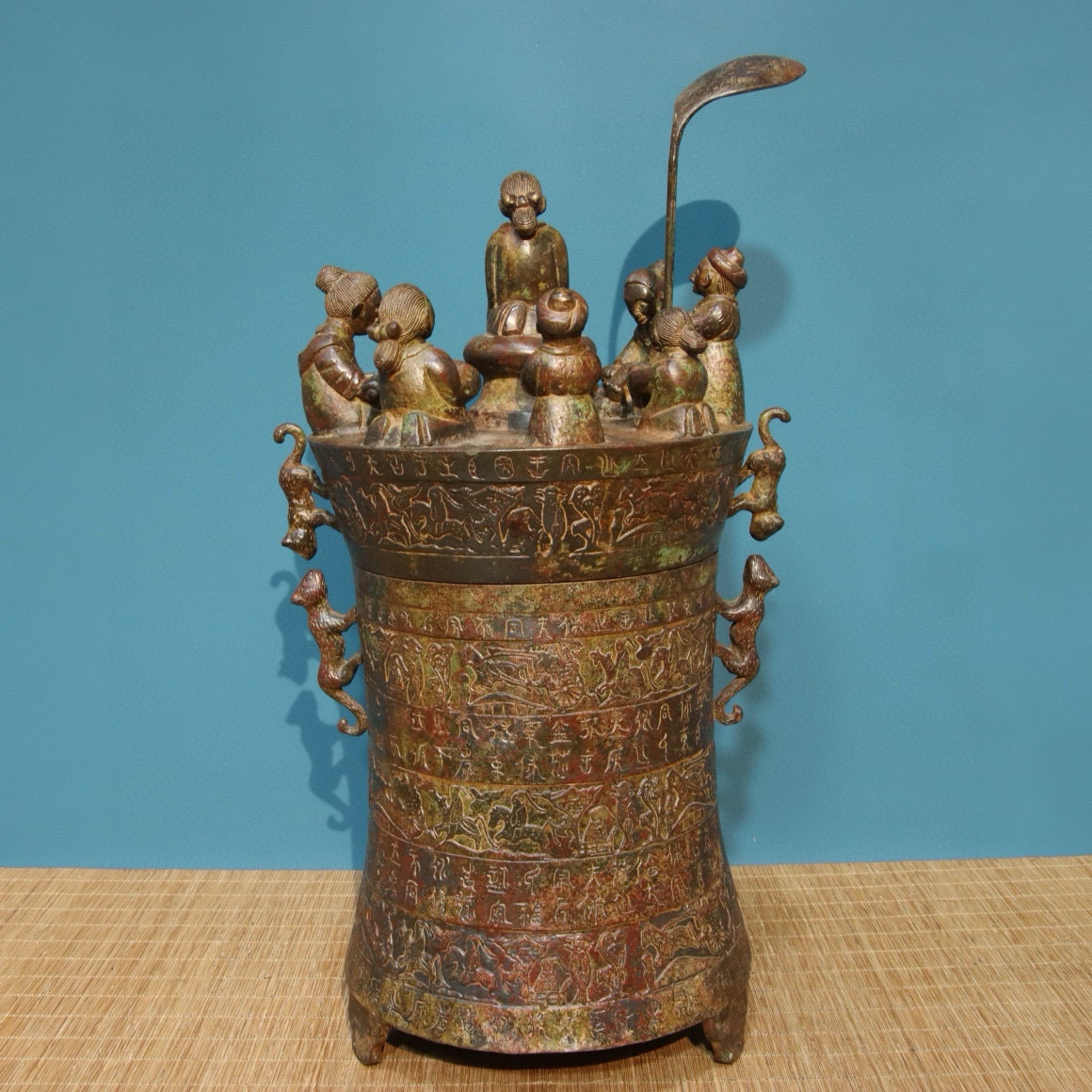 - ◆珍蔵◆中国古美術 戰漢 古銅製 青銅器 銘文儲備噐 細密細工造 置物 擺件 古賞物 時代物 AT17