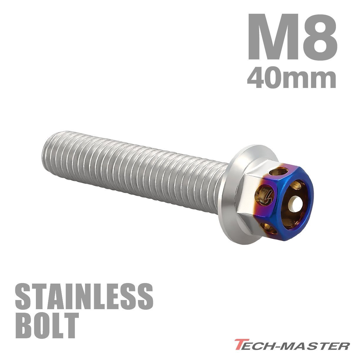 > M8×40mm P1.25 フランジボルト ヘキサゴンヘッド ステンレス シルバー×焼きチタンカラー エンジン 車 バイク カスタム 1個 TB0688