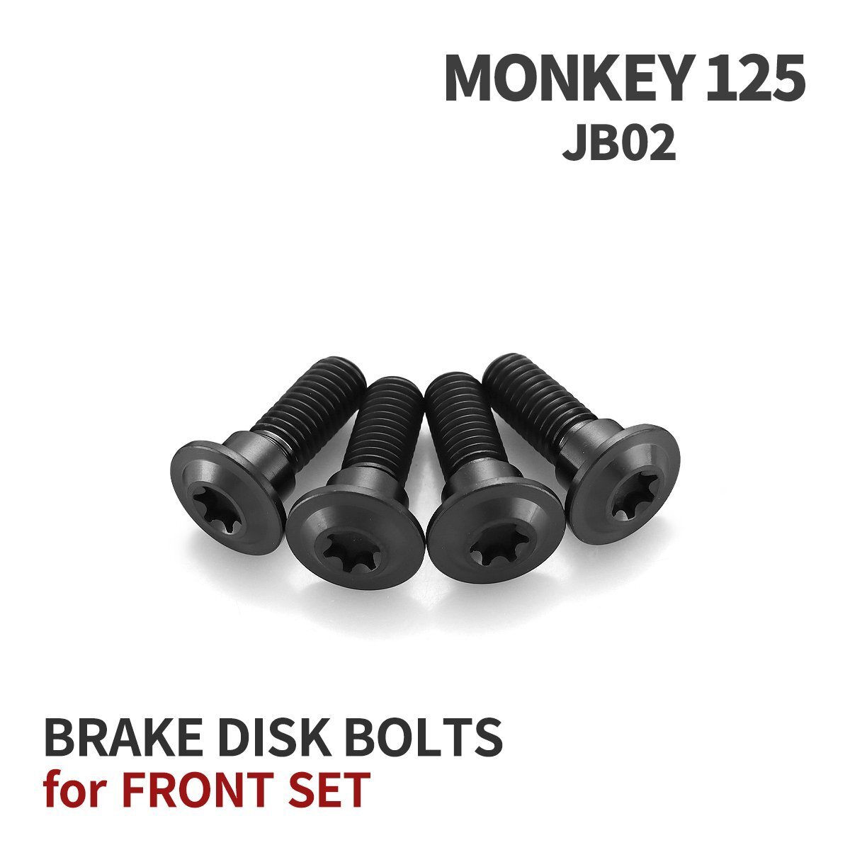 - モンキー125 JB02 64チタン ブレーキディスクローター ボルト フロント用 4本セット M8 P1.25 ブラック JA20020