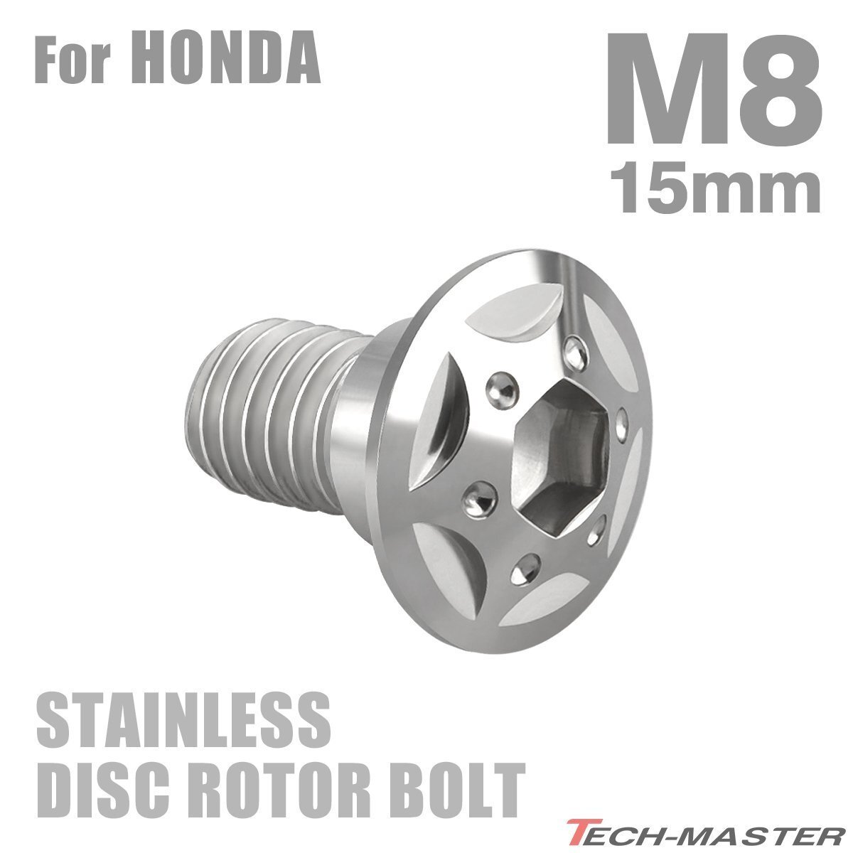 > M8×15mm P1.25 ブレーキディスク ローター ボルト スターホールヘッド ステンレス ホンダ車用 HONDA シルバー カスタム 1個 TD0097