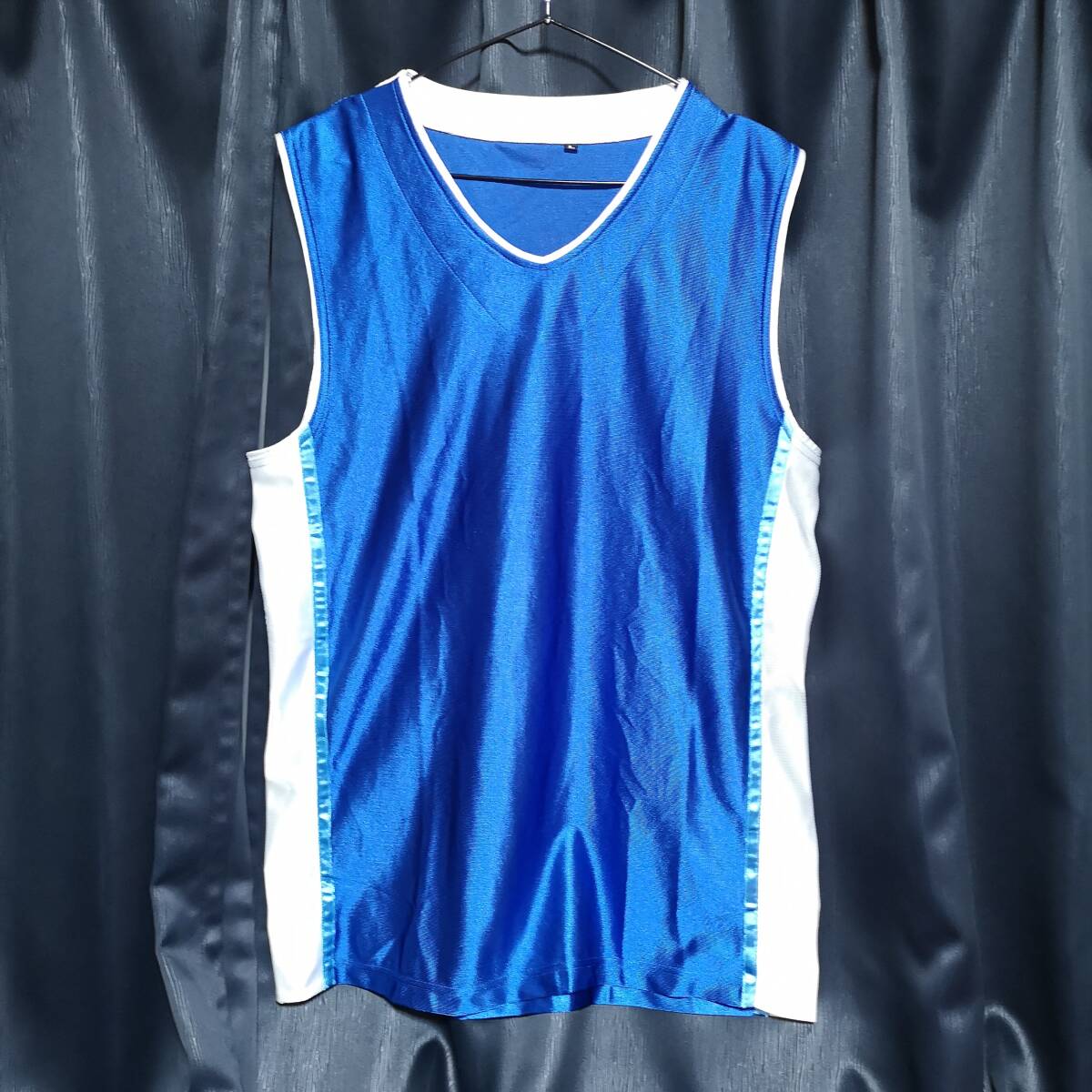 - バスケ部 ノースリーブ タンクトップ ブルー 光沢 L 755