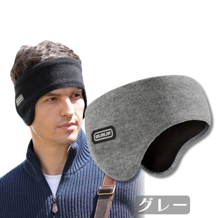 > グレー 耳まで暖かい ヘッドバンド イヤーマフ 秋冬 メンズ レディース ゴルフ テニス ウォーキング サイクリング用 耳保護 風防 防寒具