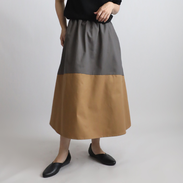 - 送料無料 愉快なスカートまつり 76cm丈 スカート パッチワーク ギャザー チノコットン Y58G