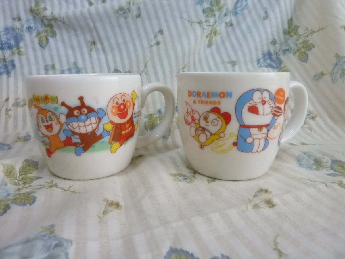 - 美品★陶器のマグカップ・アンパンマン&ドラえもん2個セット