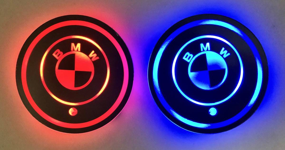 - BMW車簡単カスタム 光るLEDコースター 2個セット ドリンクホルダー 車内装アクセサリー