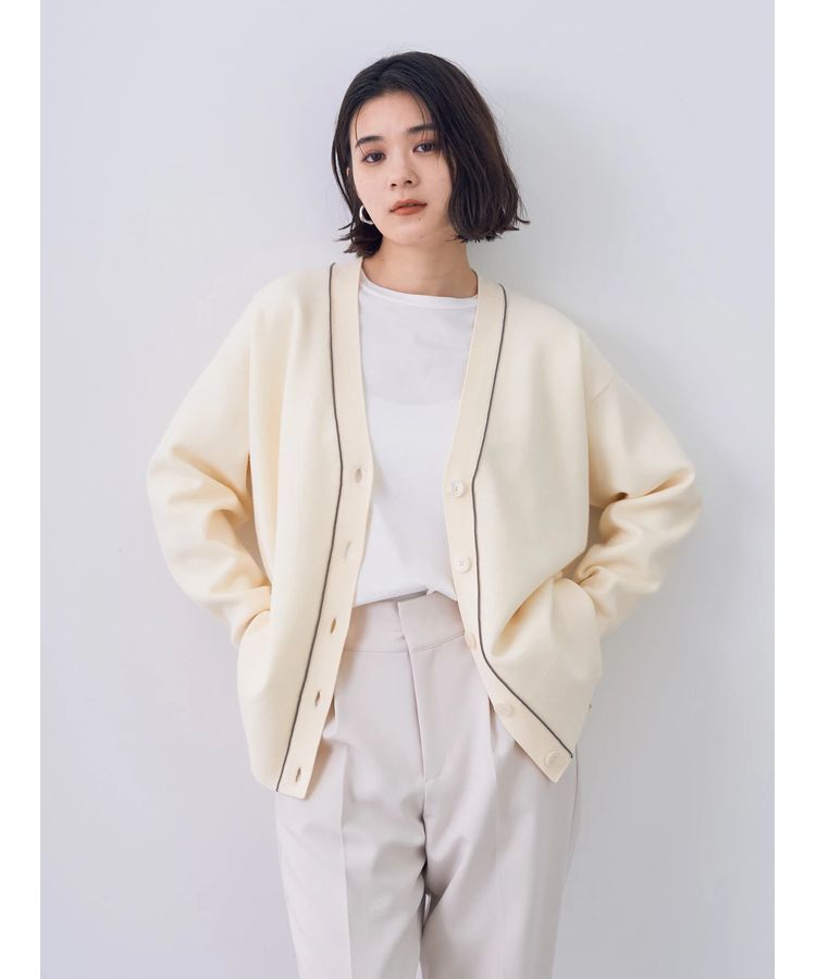 - 送料込み!946.未使用品◎YECCA VECCA 配色ラインVネックカーディガン(F)