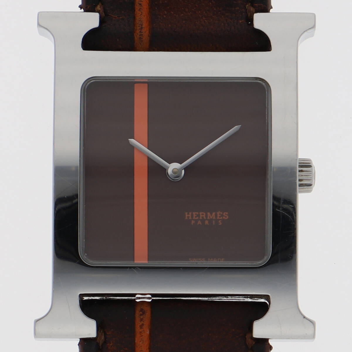 - HERMES エルメス HH1.510 Hウォッチ ブラウンダイヤル SS/レザー クオーツ レディース【134715】