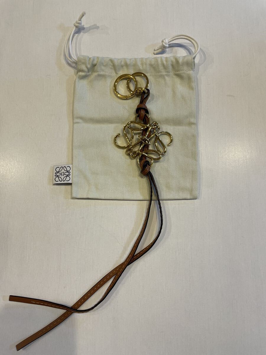 > ロエベ アナグラムチャーム カーフ キーホルダー ゴールド ブラウン タン LOEWE アナグラム チャーム キーリング バッグチャーム