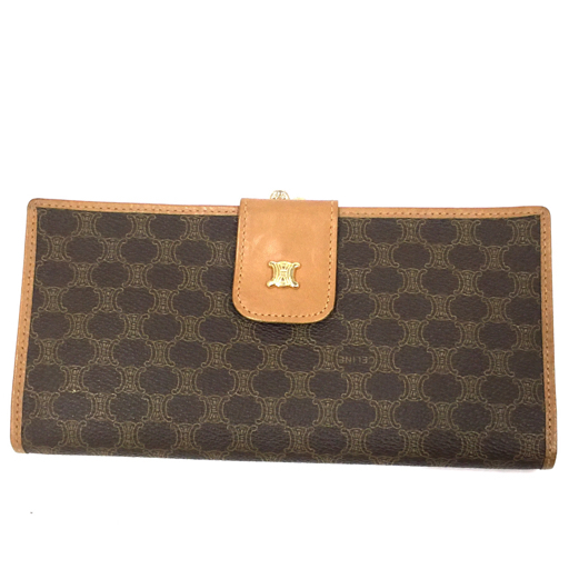 - セリーヌ マカダム柄 二つ折り長財布 がま口 長財布 レディース ブランド財布 茶系 ブラウン系 保存箱付き CELINE
