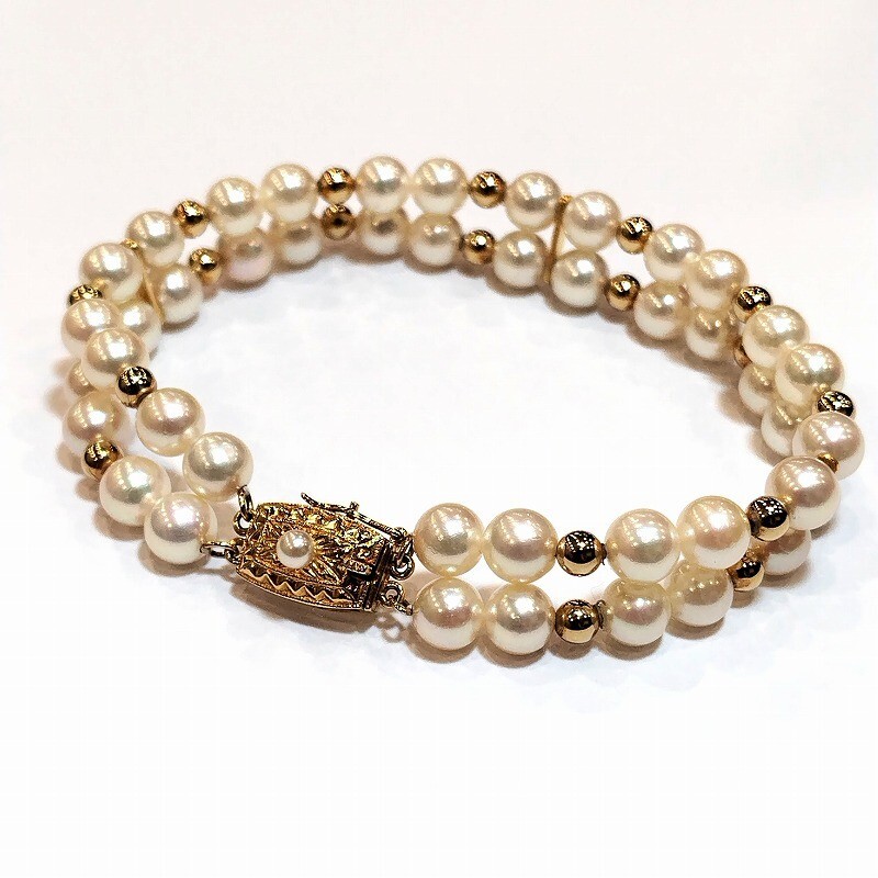 > TASAKI(タサキ) K18 ヴィンテージ パール2連 ブレスレット パール6.0mm 20.46g 17.5cm 【中古】 JA-24344