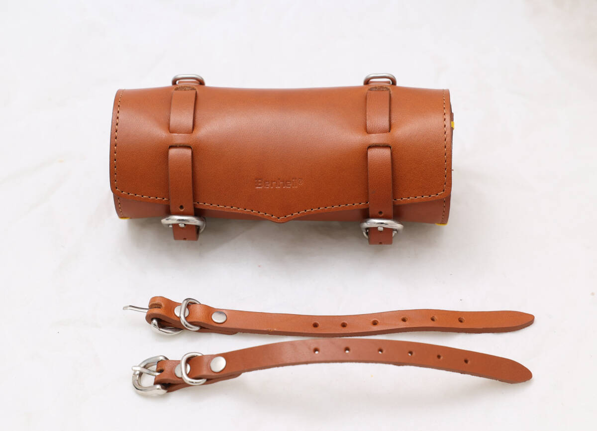 - 廃盤品 イタリアレザーサドルバッグ 筒状 ハニー 新品 Bromptonカスタム品 新品