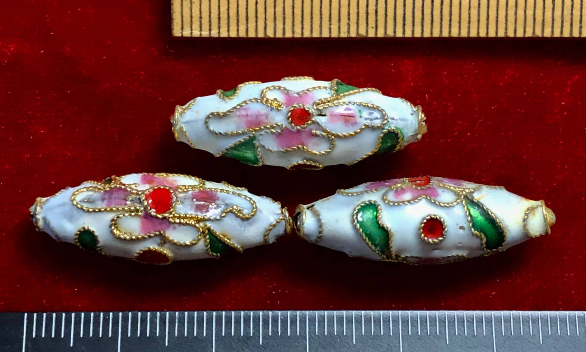 - ¶!¶ 有線七宝焼ワールド - 3個細長楕円大玉で1単位 ¶!¶ 約Φ10㎜×長27㎜細長楕円 金線に白釉ピンク花 手作 手芸 工芸 インテリア 趣味