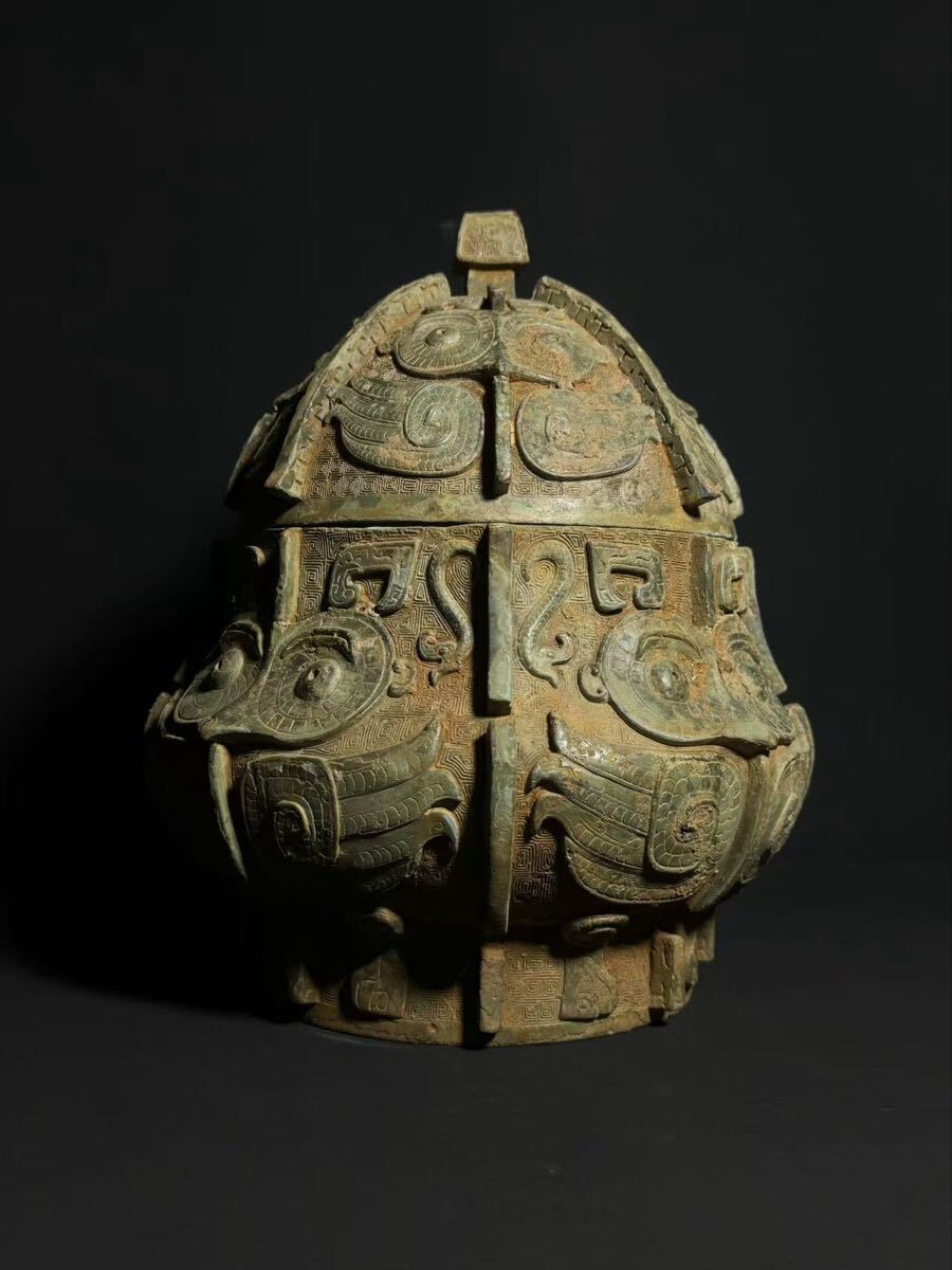 - 【竹河】中国古美術 青銅器 酒器 商時代 紋 置物 古玩 骨董 時代物 当時物 唐物 中国古玩 0030