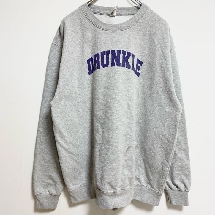 - 古着 used 長袖プリントスウェット トレーナー クルーネック DRUNKLE グレー レトロ ビッグシルエット XLサイズ