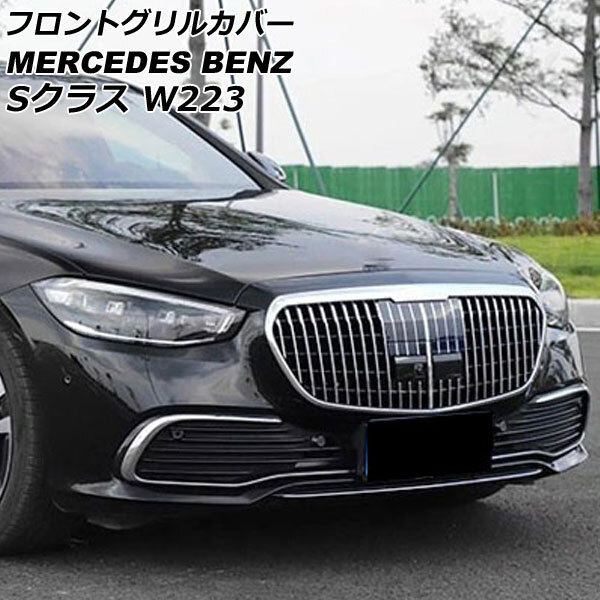 > フロントグリルカバー メルセデス・ベンツ Sクラス W223 S400,S500,S580 カメラ装備車対応 2021年01月~ シルバー ABS製 カメラホール付き