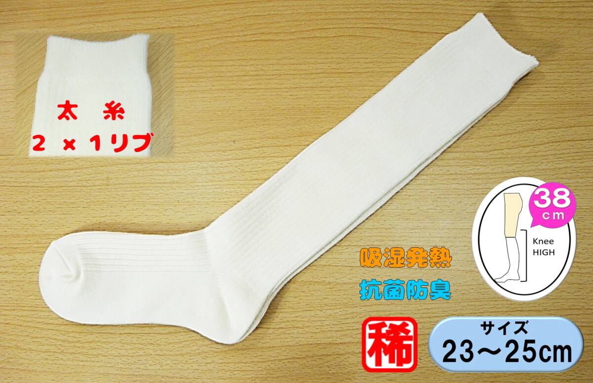 > 【レッグウェア★未使用品】秋冬◆白 ハイソックス 厚手◆太糸2×1リブ◆23-25cm◆38cm丈◆スクールソックス◆吸湿発熱◆あったか素材◆