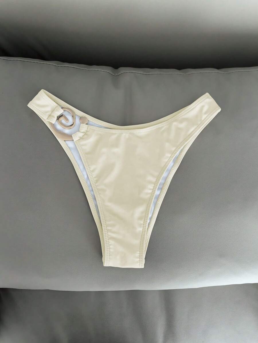 - レディース 水着 ボトムス 白ハイウエストビキニ ボトム、アシンメトリーデザイン、シンプルデザイン女性用