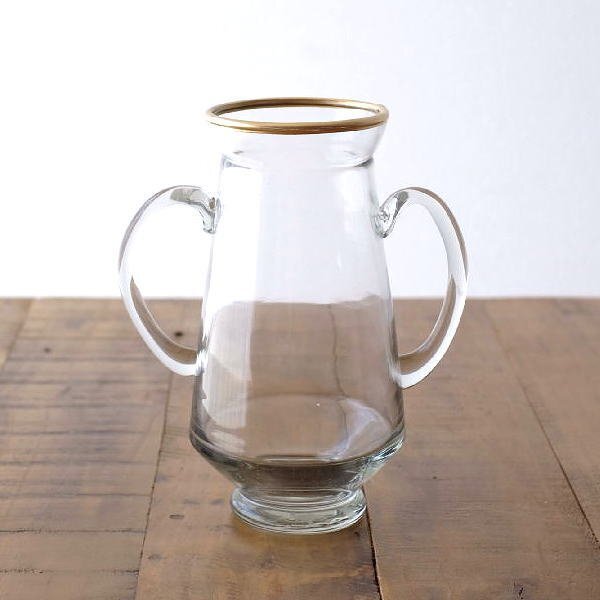 - 花瓶 ガラスベース フラワーベース おしゃれ ガラス 花器 大きめ ハンドル インドの吹きガラスベース D 送料無料(一部地域除く) kan7980