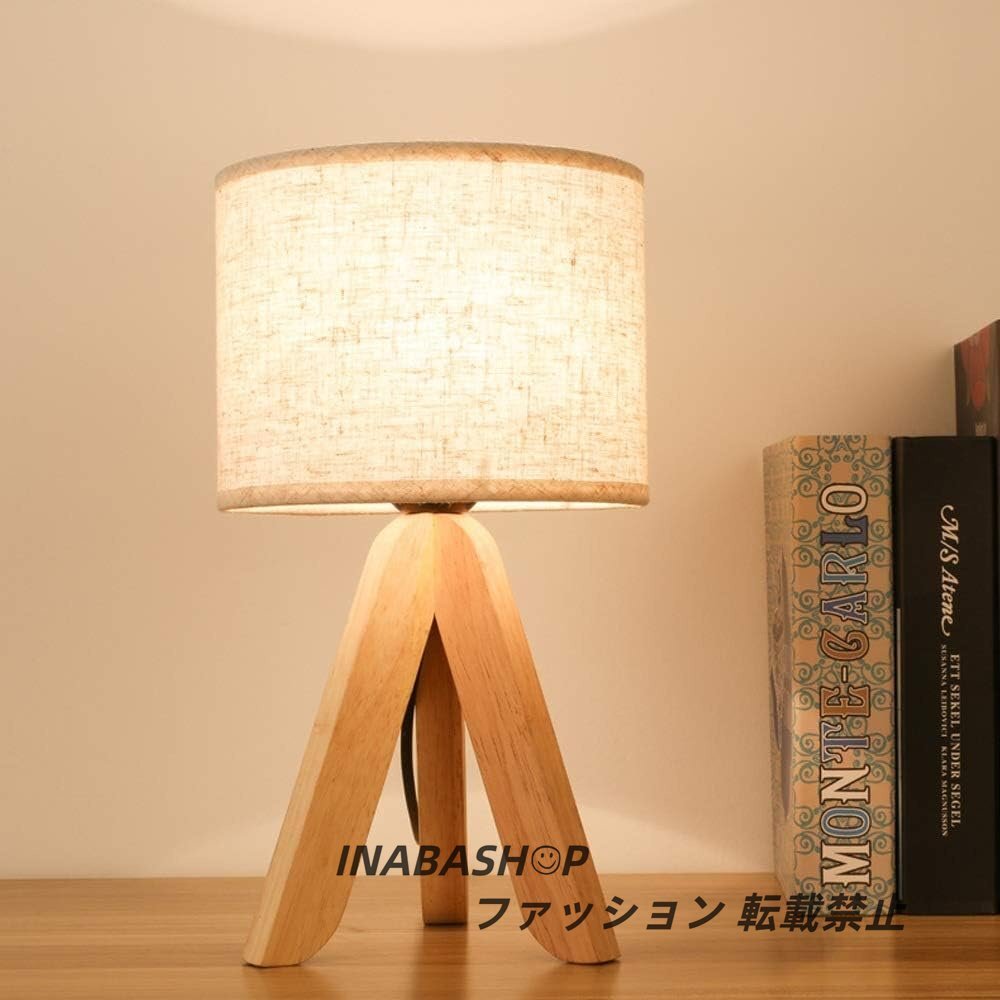 - デコラティブナイトテーブルランプミニマリストデスクライト照明ソリッドウッドベースと布地ランプのベッドルームのための布のランプ