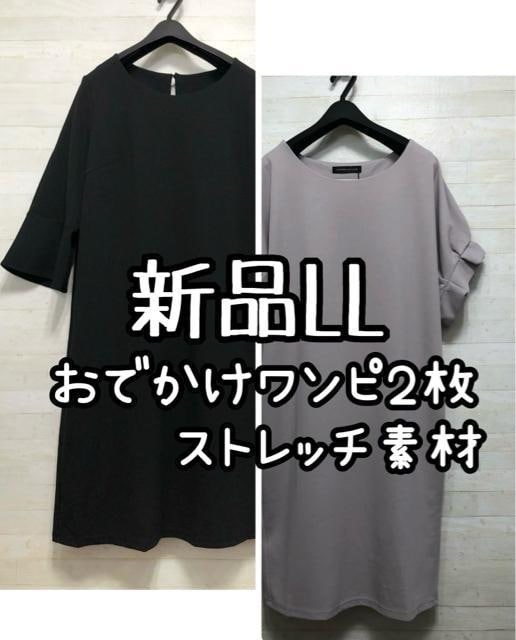 - 新品☆LL♪黒&グレー♪ストレッチ素材きれいめワンピース2枚♪☆Q279