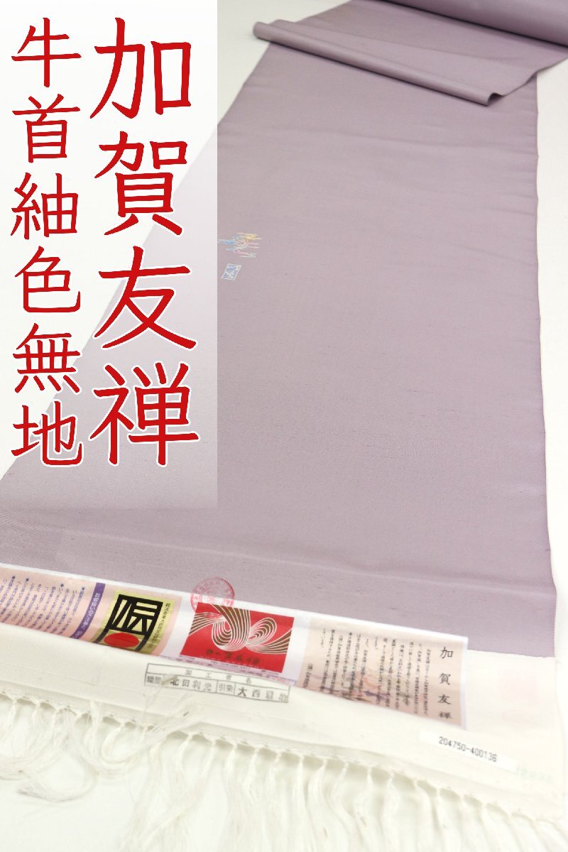 - 和遊館 即決kta2928 老舗 問屋 別注品 本加賀友禅 松任いち × 石川県指定無形文化財 白山工房 手挽き糸 牛首 紬 無地 着尺 お仕立て付き