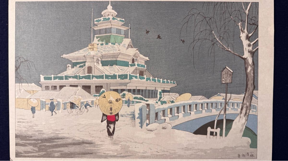 - 真作 小林清親 『海運橋 第一銀行』 力強い摺りの木版画です 木版画 光線画 東京名所図 錦画 雪景色 浮世絵 美人画 (検 広重 巴水 吉田博