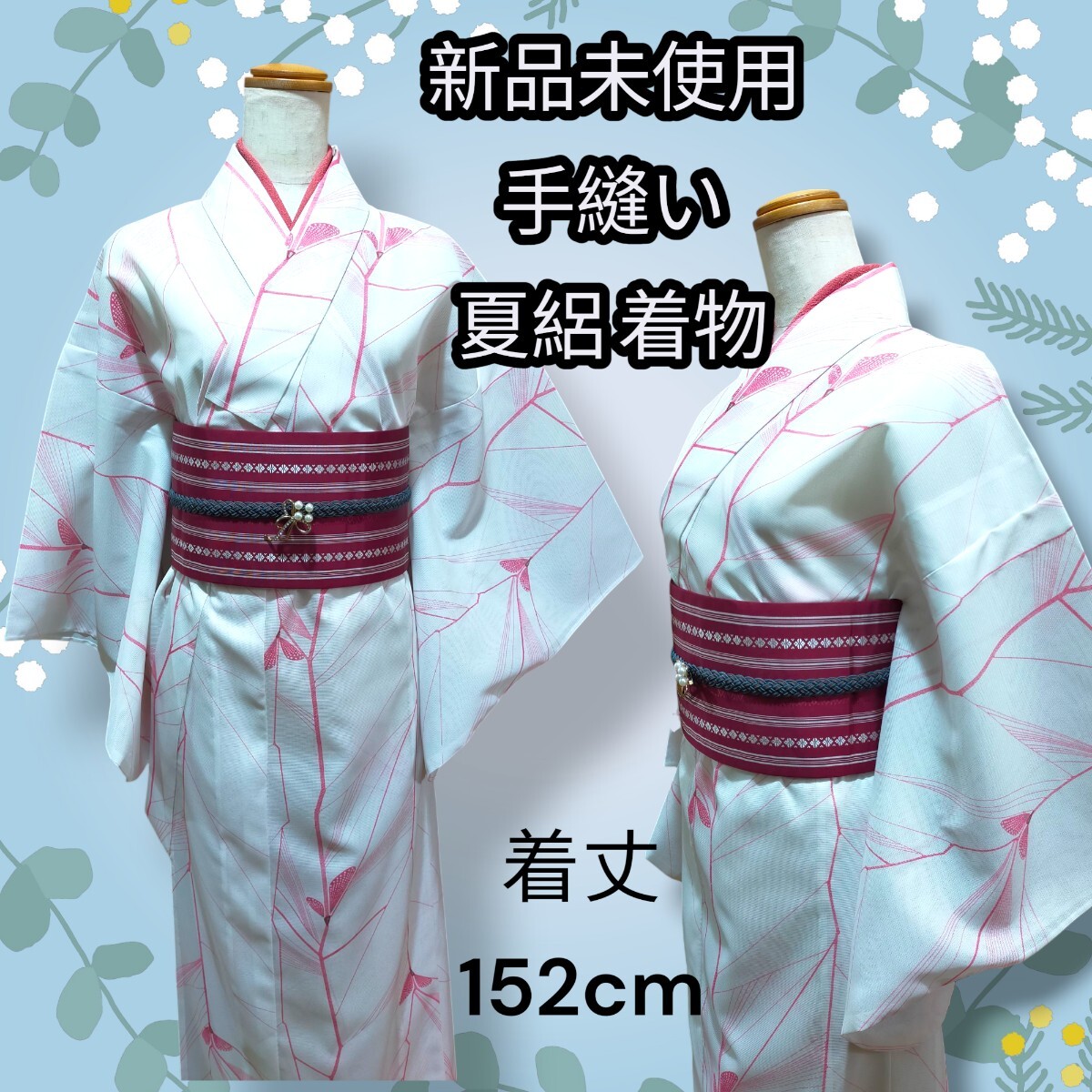 - 新品未使用 手縫い 夏着物 絽の着物 身丈152cm 夏絽 単衣 単品 アンティーク着物