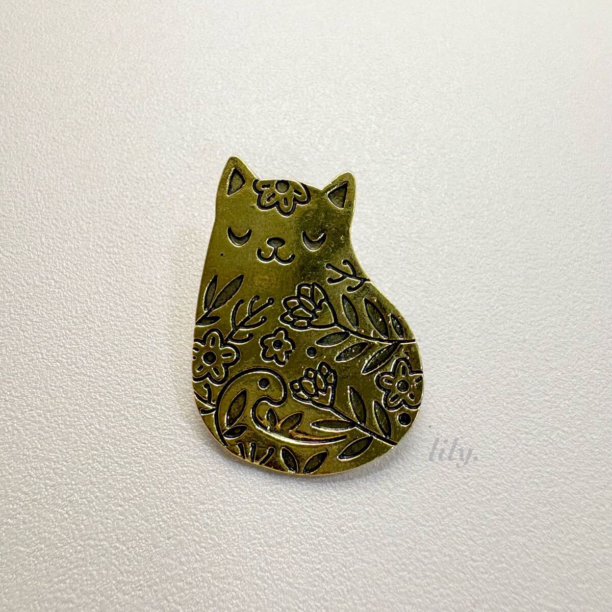 - 【ピンバッジ】ほほえむ猫さん にゃんこ アンティーク調 癒し