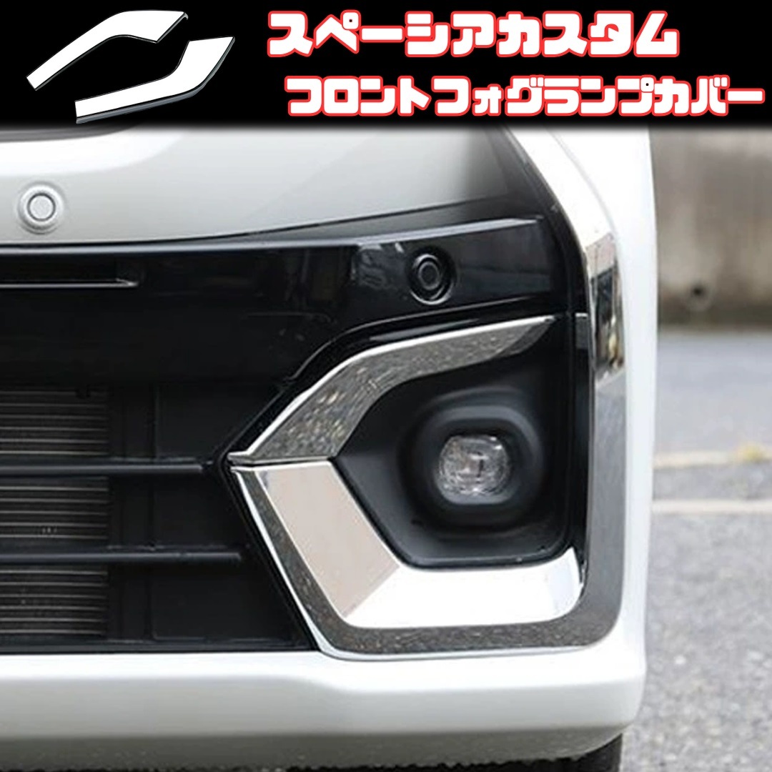> 【スペーシアカスタム】 フロント フォグランプガーニッシュ / メッキ / SUZUKI MK94S MK54S 対応 / スズキ ライト リム カバートリム