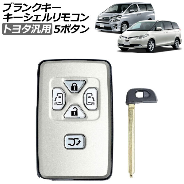- ブランクキー/キーシェルリモコン シルバー 5ボタン トヨタ 汎用 エスティマ ノア ヴォクシー アルファード ヴェルファイア など