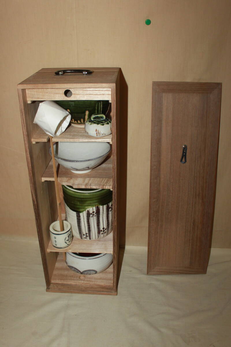 - ◆◆茶道具旅箪笥11点揃 茶碗/水指/棗/建水/茶筅茶杓柄杓/香合蓋置