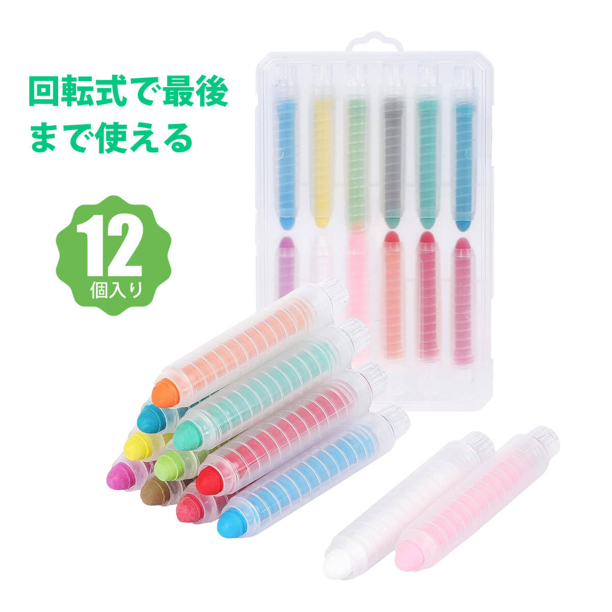- 【12個入り】チョーク 水溶性無塵 手袋不要 汚れ防止 粉が散らない子供用 安全 無毒 学校 教室 家庭学習 透明回転式 軽量 携帯便利 ;J7149;