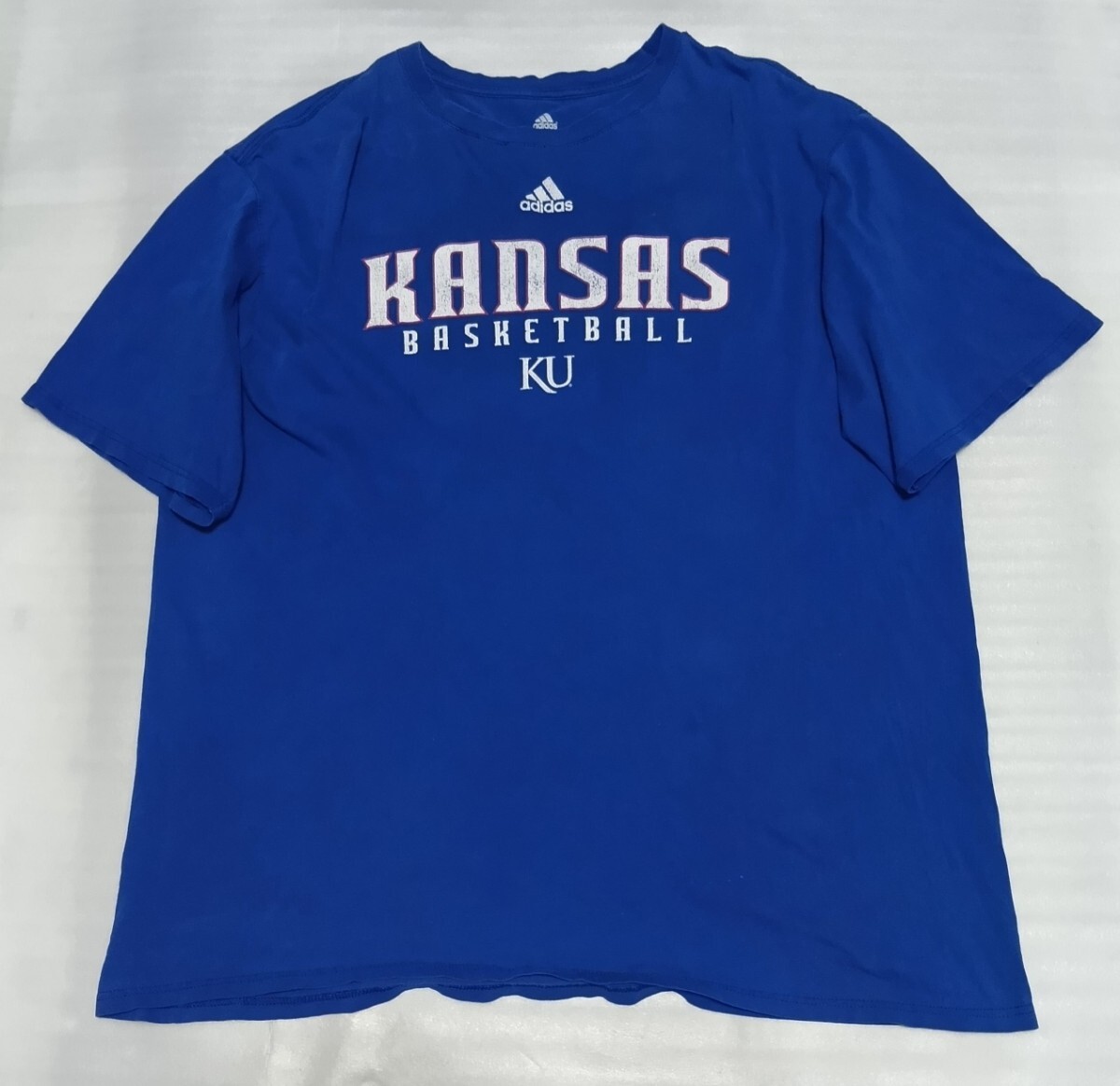 - ☆adidas.com TEE サイズ2XL 半袖TシャツKANSASバスケットボールKUスポーツ青色ブルーCOTTONファッション洗濯済ティー アディダス トップス