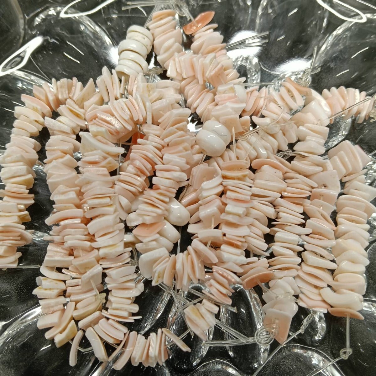> L52 ☆未使用 大量 サザレ チェコ ガラスビーズ 59g 7~8mm スクエア ピンク 大粒 ヴィンテージ パーツ アクセサリー ネックレス B-451