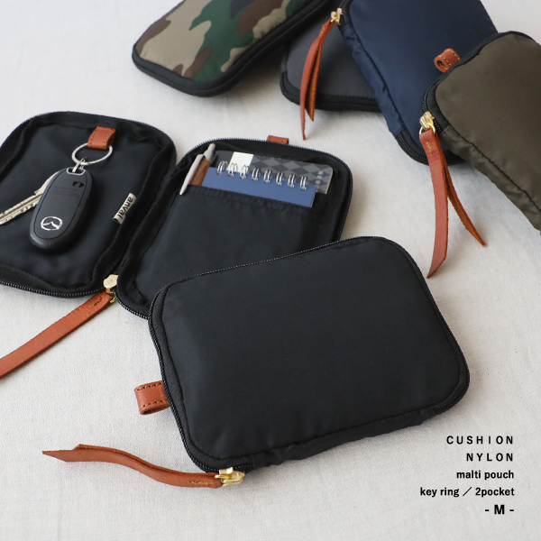 - 新作 Mサイズ クッションナイロン キーケース カードケース キーリング 牛革レザー ポーチ 軽量 マルチポーチ S09B