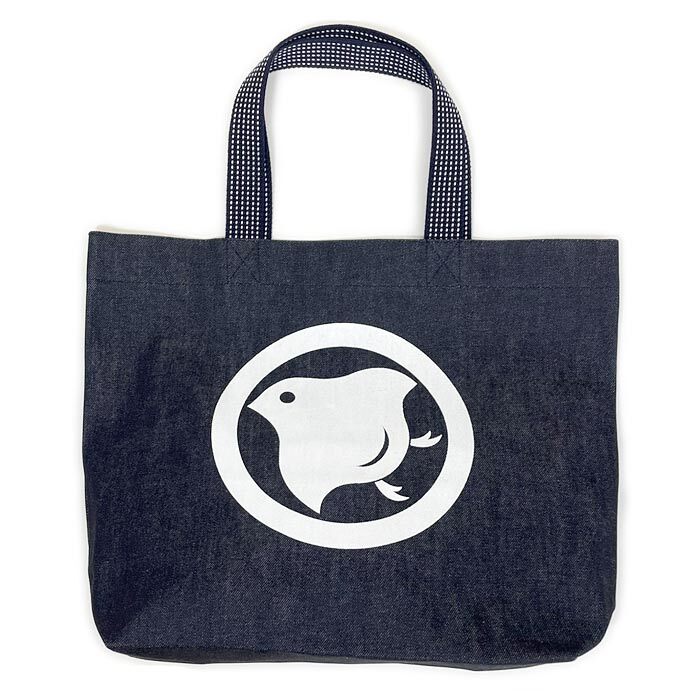 - インディゴデニムトートバッグ(横長)丸に千鳥 倉敷デニム 千鳥柄トートバッグ インディゴ染めデニム 日本製 マチ有り 内ポケット付