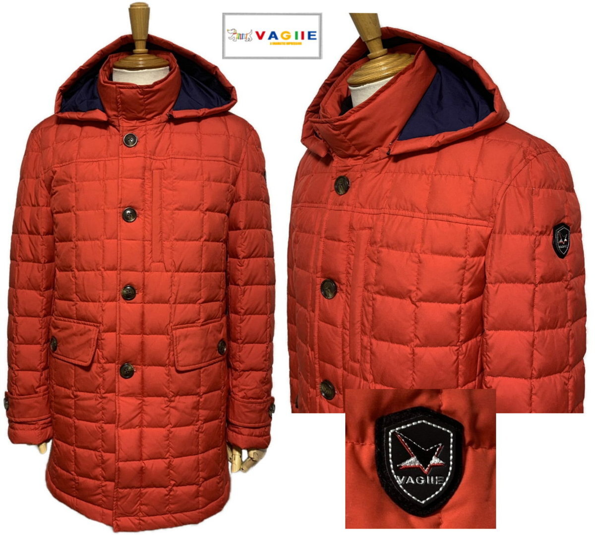 > VAGIIE バジエ キルティング ワンポイント刺しゅうワッペン ダウンコート 赤 フード取り外し可 size48 L