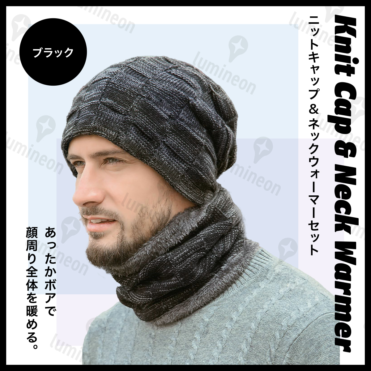 - ニット 帽 ネックウォーマー セット メンズ 防寒 スヌード マフラー 暖かい 裏起毛 帽子 キャップ おしゃれ スキー スノーボード g345b 1