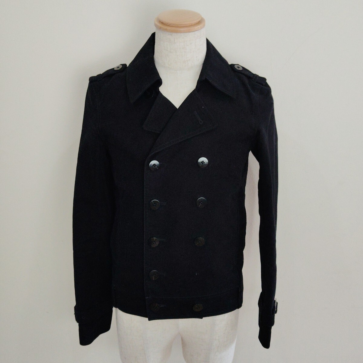 > 0912/L/HARE メンズ ピーコート ジャケット ダブル スエード 黒
