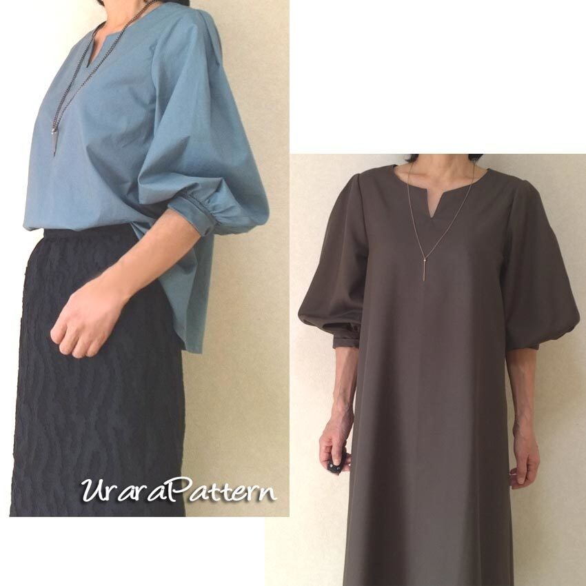 - 即決♪張り合せ不要!型紙 キーネックワンピース&ブラウス S~5L